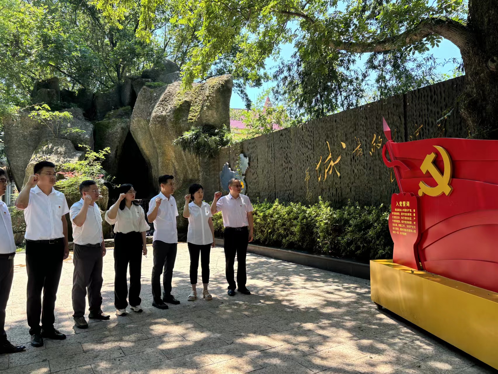 活動中,黨員們瞻仰了葉挺、徐海東等先烈銅像,參觀了館內豐富詳實的歷史資料及實物,跟隨講解員的腳步,切身感受往昔崢嶸歲月,敬佩先輩們不畏困苦、不怕犧牲的革命精神。隨后,全體黨員面向鮮紅的黨旗,重溫入黨誓詞,重憶入黨初心。