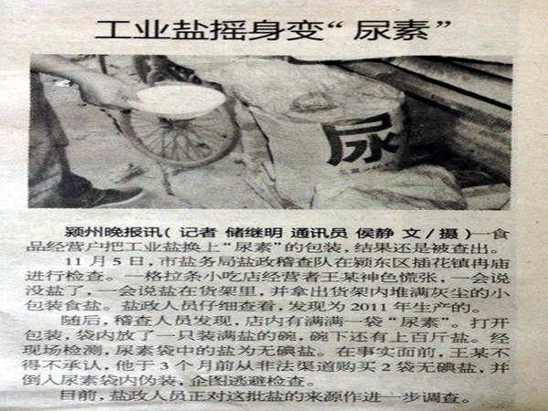 一食品經(jīng)營戶把工業(yè)鹽換上“尿素”的包裝,結(jié)果還是被查出。