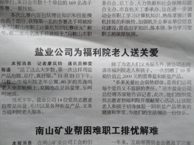 《皖江晚報(bào)》:鹽業(yè)公司為福利院老人送關(guān)愛